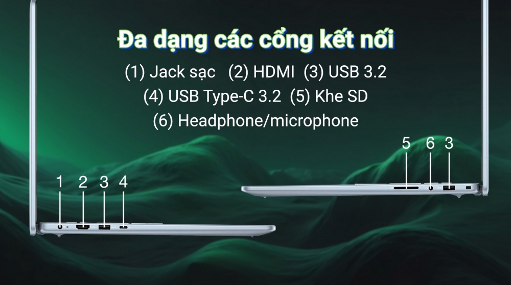 Dell Inspiron N5640 C7U161W11IBU được trang bị đầy đủ các cổng kết nối phổ biến như HDMI, USB 3.2, Thunderbolt 4 và khe đọc thẻ nhớ SD. Điều này giúp người dùng dễ dàng kết nối các thiết bị ngoại vi như màn hình, ổ cứng di động, máy in và các phụ kiện khác. Ngoài ra, sản phẩm còn hỗ trợ chuẩn kết nối không dây Wi-Fi 6 và Bluetooth 5.2, đảm bảo tốc độ truyền tải dữ liệu nhanh chóng và ổn định.