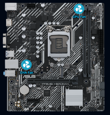 Asus Prime H510M-K được sản xuất kết hợp với một loạt các đầu cắm quạt nhằm đảm bảo dàn máy luôn ổn định và làm mát khi làm việc ở cường độ cao.